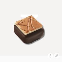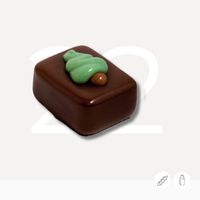 De iconische Frangipane praline, bekroond met de Silver Award tijdens de 12de editie van de Belgium Chocolate Awards. Het geliefde Belgische frangipanegebak in chocoladevorm. Deze praline is gevuld met amandelen en abrikozenjam, aangeboden in een taartvormige cup met een kenmerkend kriskraspatroon.