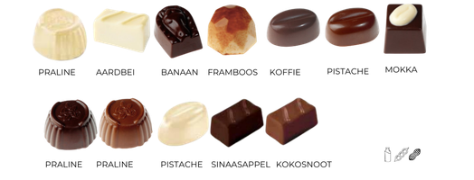 Onze bonbons worden verwerkt in een ruimte waar gewerkt wordt met verschillende allergenen. Dit zorgt dat producten sporen van deze allergenen kunnen bevatten.