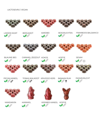 Warme, veelal notige smaken in prachtige vormen en kleuren. Voor bij de koffie of als afsluiter van een diner. Maar vooral om samen te delen met de mensen om je heen. De chocolatiers van Geruba, Lindy's Patisserie en Dragée hebben ook dit jaar met veel liefde gewerkt aan deze prachtige collectie handwerk bonbons.